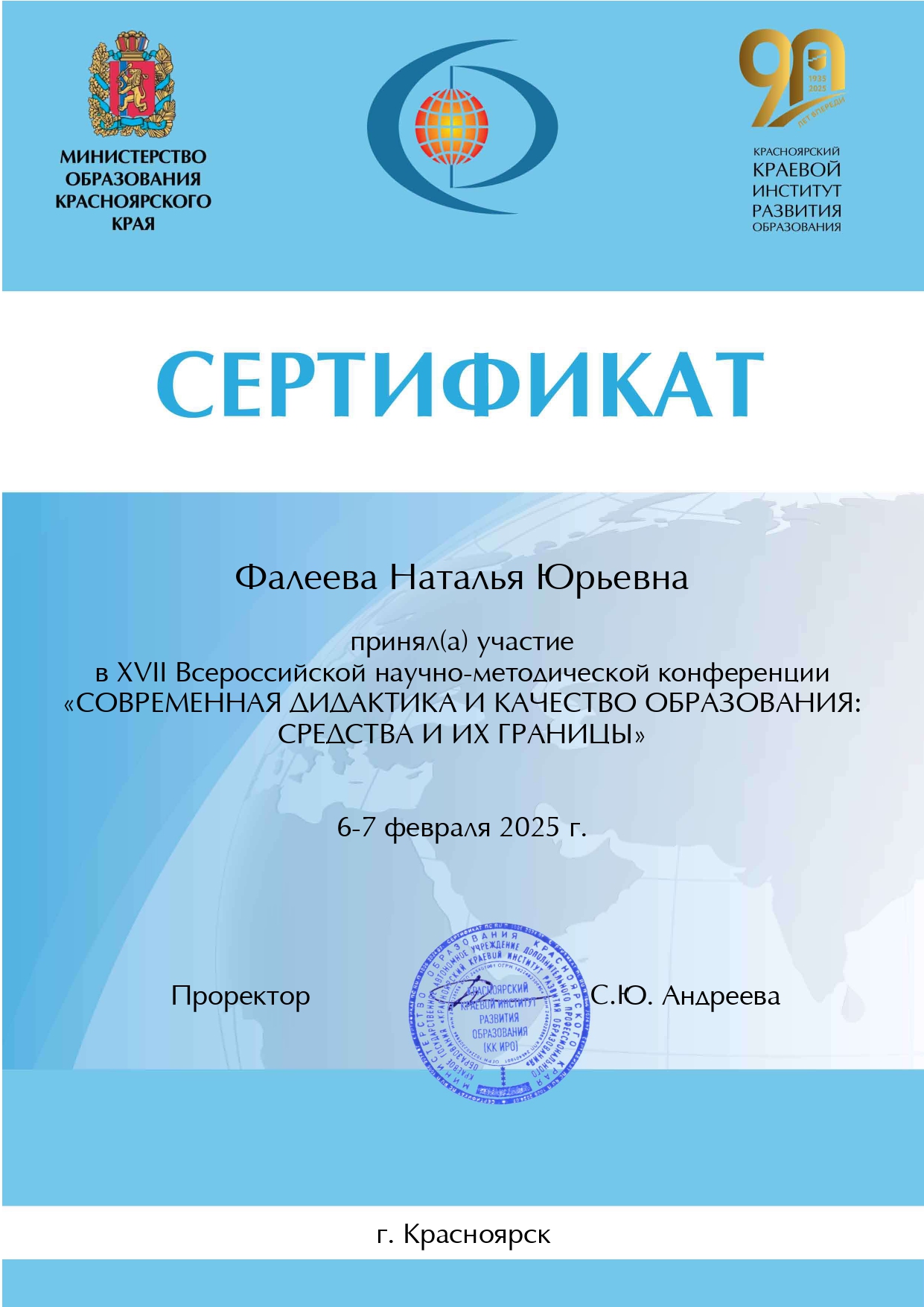 • Сертификат участника всероссийской конференции «Опыт и проблемы введения федеральных государственных образовательных стандартов общего образования» 24-26.11.2021 / ГБУДПО «Челябинский институт переподготовки и повышения квалификации работников образования»